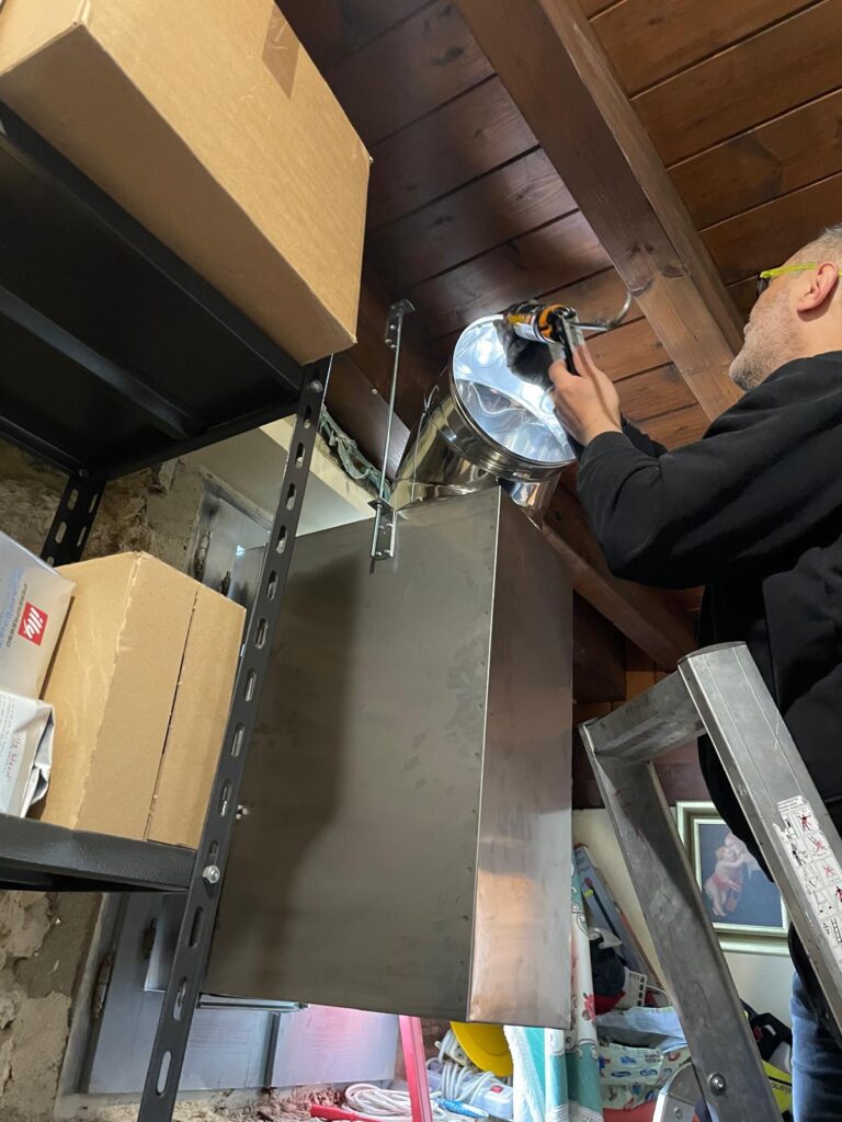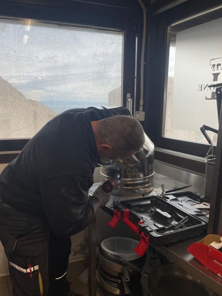 Il nostro intervento è iniziato con la traversata in mare, è constato della installazione di un sistema di aspirazione e si è concluso con un ottimo primo di mare! ovviamente buonissimo ! I nostri tecnici hanno sistemato la nuova cappa di aspirazione all’interno dei locali cucina. Un ottimo sistema di aspirazione evita problematiche come cattivi odori in cucina e permette agli operatori di lavorare in tranquillità.
